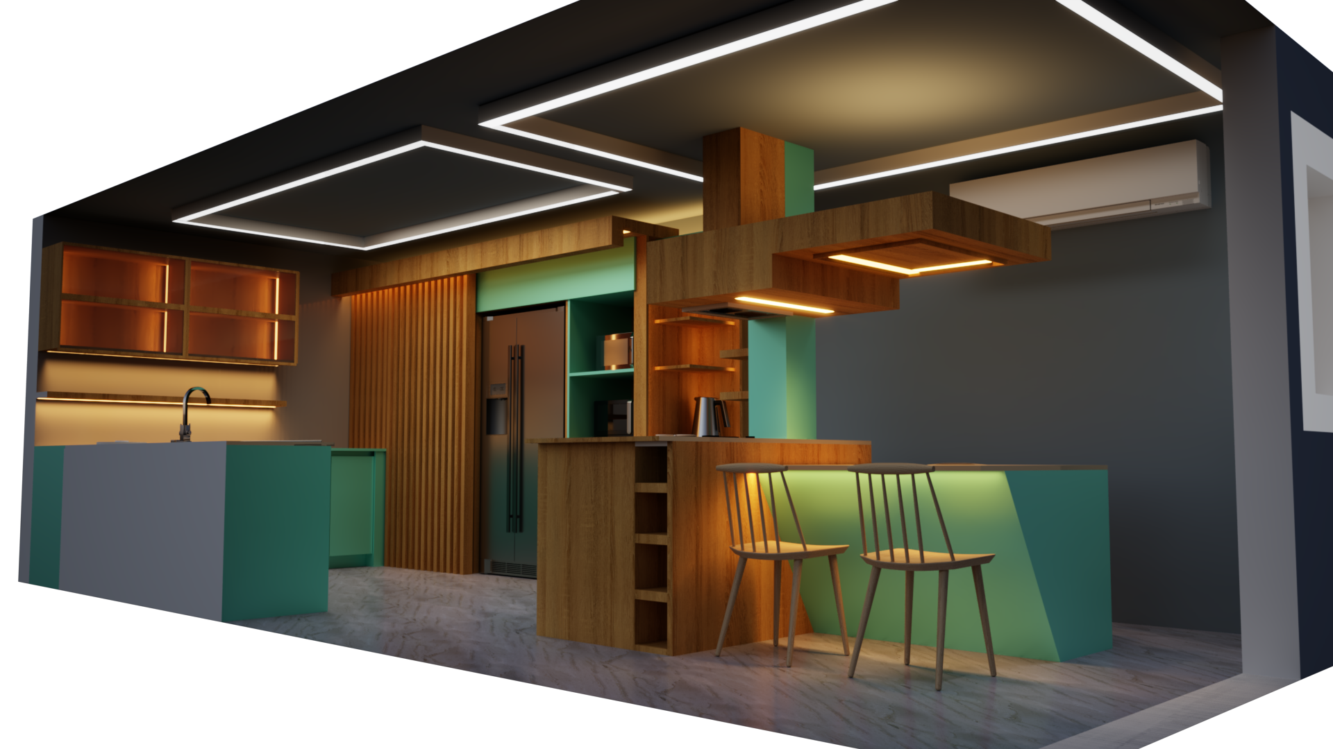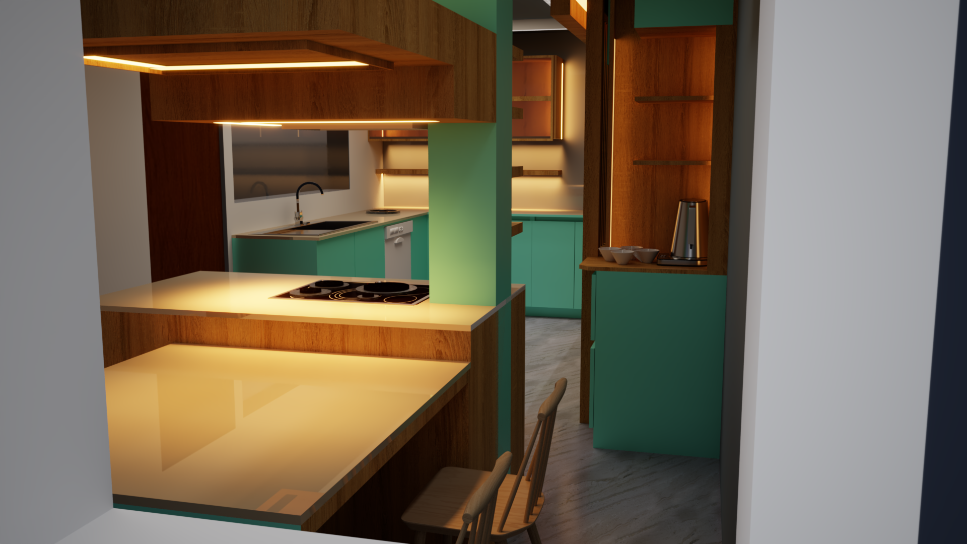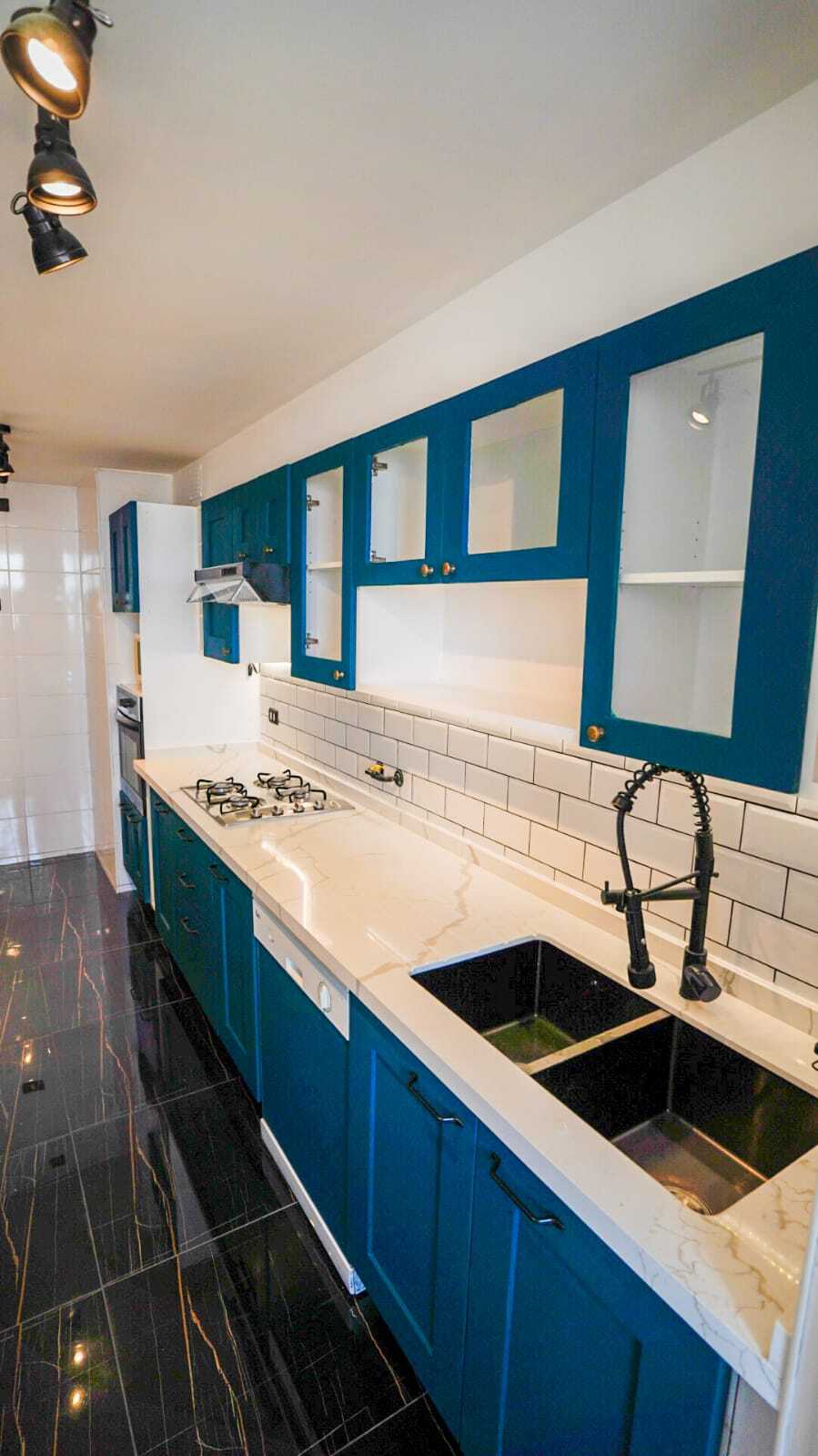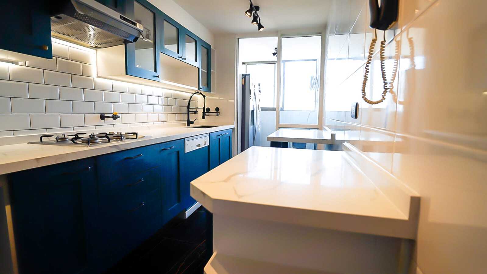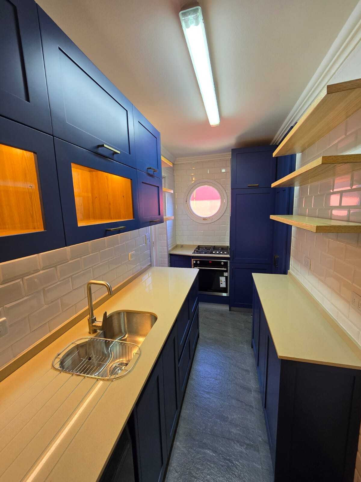 - Pintura MILESI® en puertas shaker confeccionadas a medida - Iluminación LED de última generación - Muebles adaptados en diseño para espacios reducidos - Proyecto de gasfitería, arquitectura y más